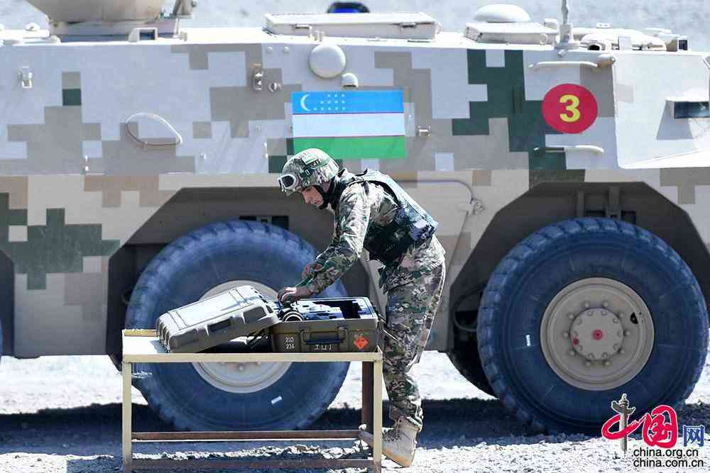 8月24日,“國際軍事比賽-2021”中國庫爾勒賽區(qū)“晴空”項(xiàng)目首場比賽技能賽在庫爾勒開賽,烏茲別克斯坦參賽隊(duì)員下車取彈。 張永進(jìn) 攝