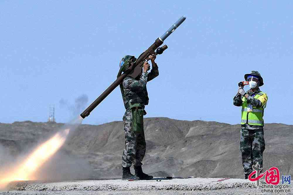 8月24日,“國際軍事比賽-2021”中國庫爾勒賽區(qū)“晴空”項(xiàng)目首場比賽技能賽在庫爾勒開賽,中國參賽隊(duì)員發(fā)射便攜式防空導(dǎo)彈。 張永進(jìn) 攝