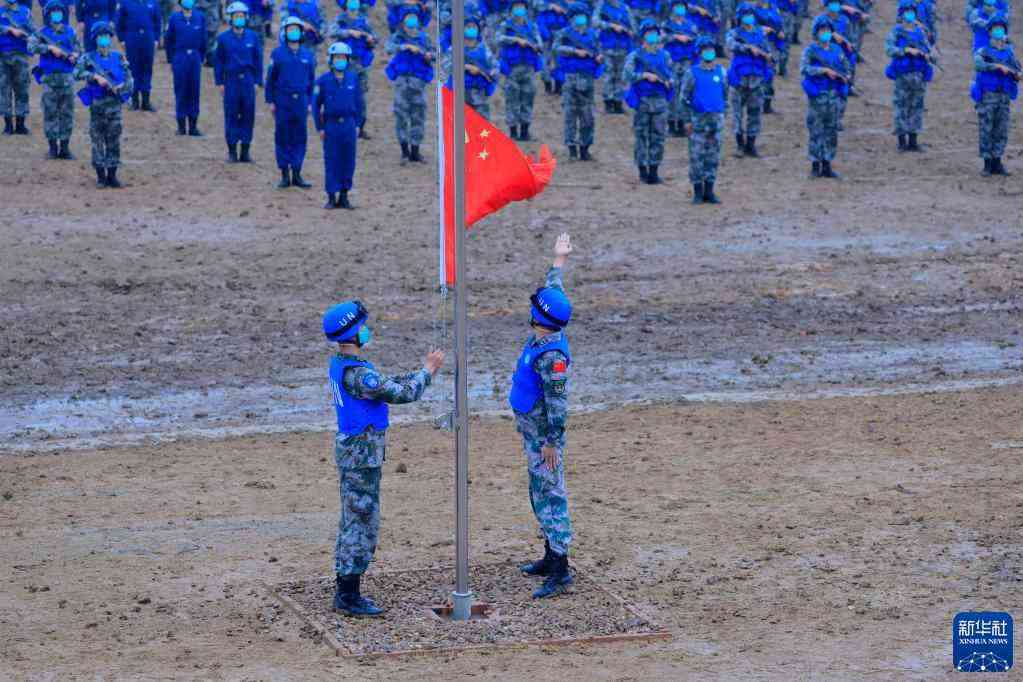 9月6日,在“共同命運(yùn)-2021”國際維和實(shí)兵演習(xí)開始儀式上,升旗手升中國國旗。新華社記者 劉芳 攝