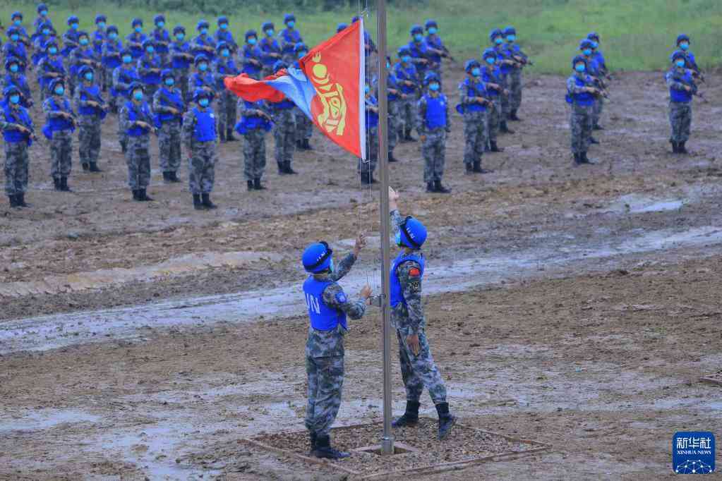 9月6日,在“共同命運(yùn)-2021”國際維和實(shí)兵演習(xí)開始儀式上,升旗手升蒙古國國旗。新華社記者 劉芳 攝