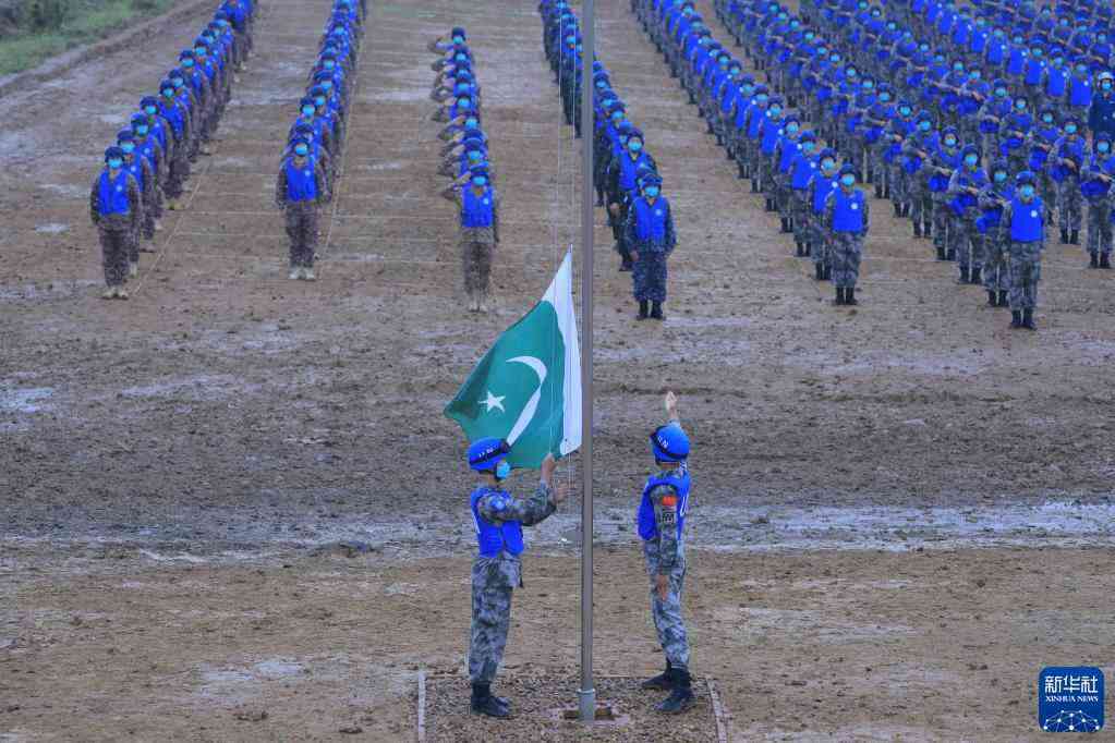 9月6日,在“共同命運(yùn)-2021”國際維和實(shí)兵演習(xí)開始儀式上,升旗手升巴基斯坦國旗。新華社記者 劉芳 攝
