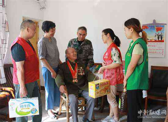 白志明老兵身體依舊很硬朗,精神矍鑠,身穿戎裝,佩戴榮譽(yù)勛章,交談中煥發(fā)著神采。工作人員和志愿者們與老兵一起回憶戰(zhàn)爭(zhēng)時(shí)代的崢嶸歲月,共同暢談現(xiàn)在的美好生活,與老人合影留念……