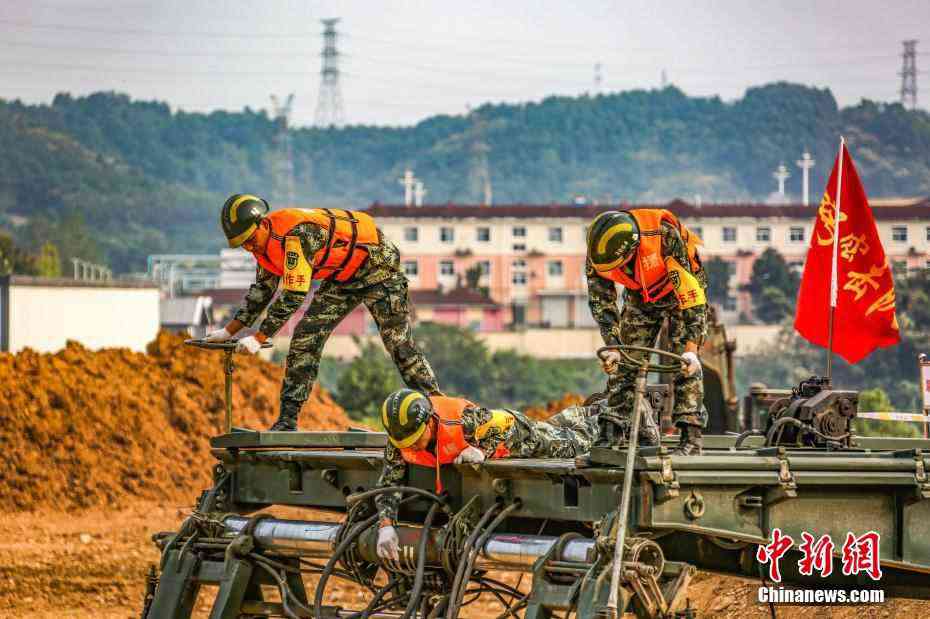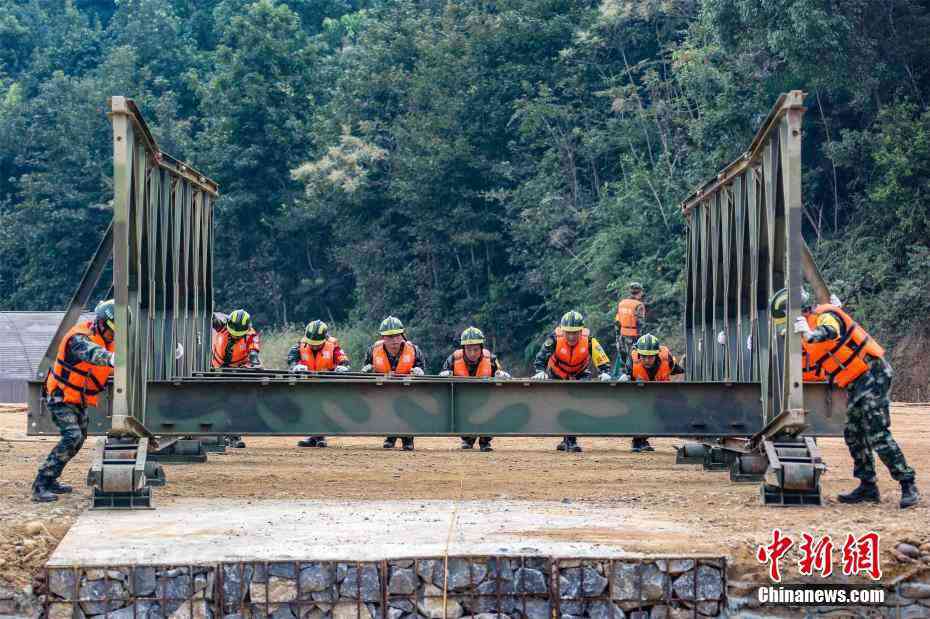 官兵同心協(xié)力架設鋼橋。余凱 攝