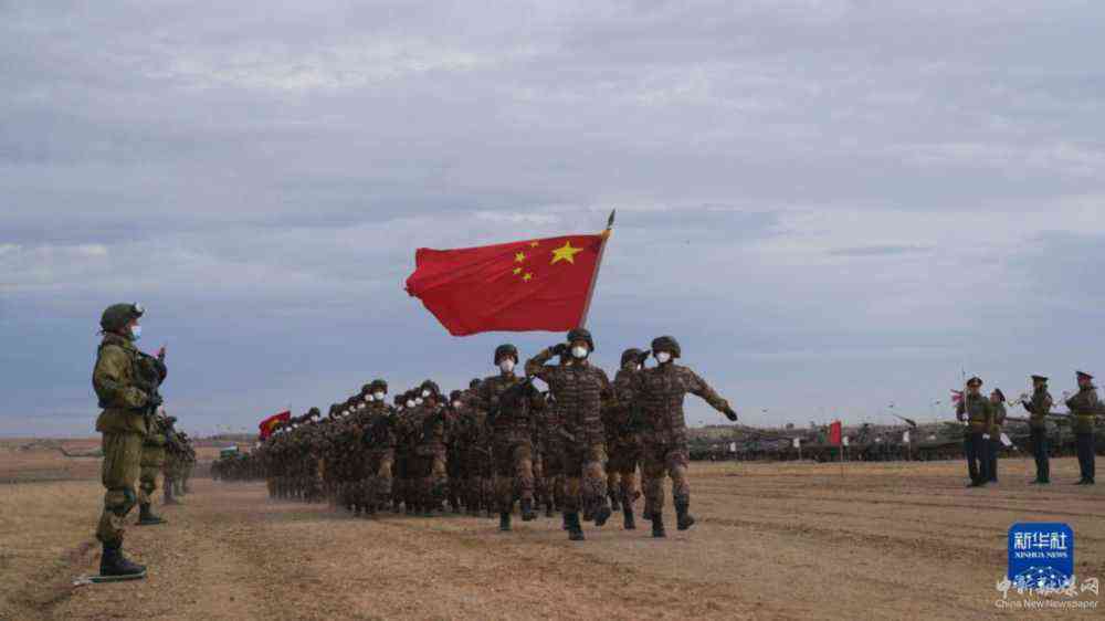 9月24日,在俄羅斯奧倫堡州東古茲靶場舉行的“和平使命-2021”上海合作組織聯(lián)合反恐軍事演習閉幕式上,中方參演部隊方隊整齊列陣。新華社記者梅世雄攝