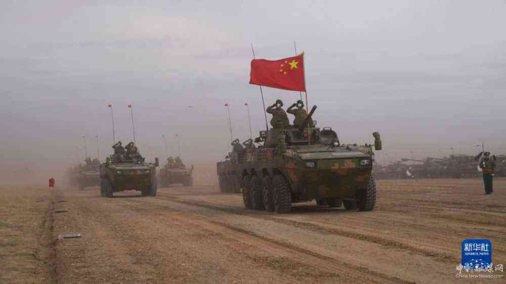 9月24日,在俄羅斯奧倫堡州東古茲靶場舉行的“和平使命-2021”上海合作組織聯(lián)合反恐軍事演習閉幕式上,中方參演部隊裝備方隊接受檢閱。新華社記者梅世雄攝