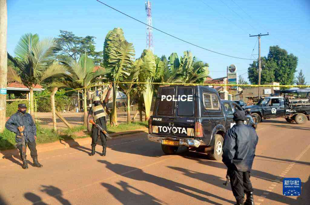 10月24日,警方在烏干達首都坎帕拉郊區(qū)爆炸事件現(xiàn)場執(zhí)勤。