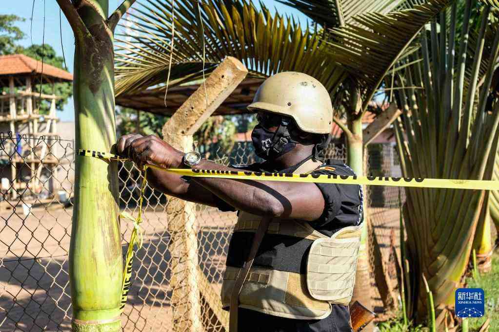 10月24日,警方在烏干達首都坎帕拉郊區(qū)爆炸事件現(xiàn)場拉起警戒線。
