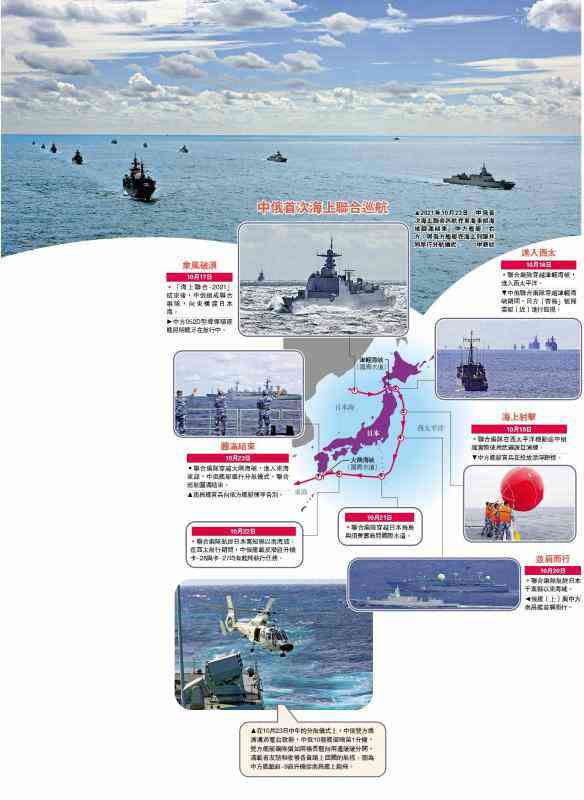 中俄“海上聯合-2021”軍事演習10月14日至17日在俄羅斯彼得大帝灣附近??沼蚺e行。演習結束后,雙方組成聯合編隊,自17日至23日開展首次海上聯合巡航。