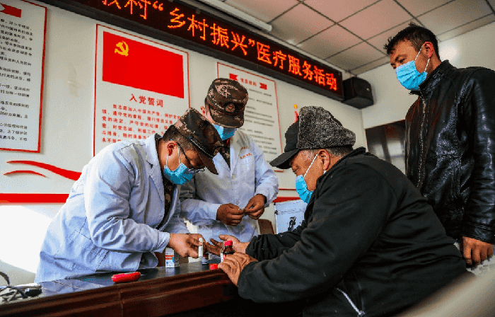 ↑支隊(duì)醫(yī)療小分隊(duì)為村民開展咨詢義診、送醫(yī)送藥等服務(wù)