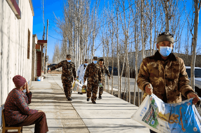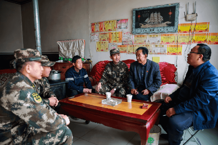↑支隊(duì)官兵挨家挨戶走訪慰問
