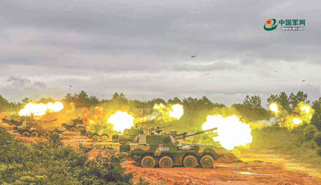 炮兵分隊對“敵”陣地進行火力覆蓋。