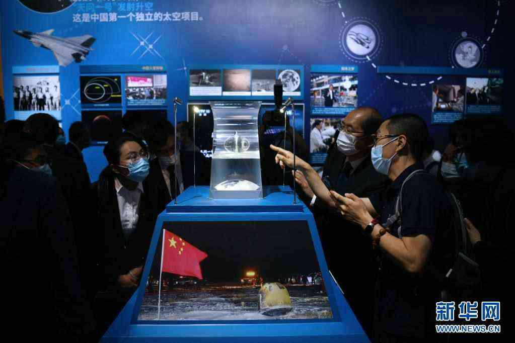 5月24日,人們?cè)趨⒂^展出的月球土壤。