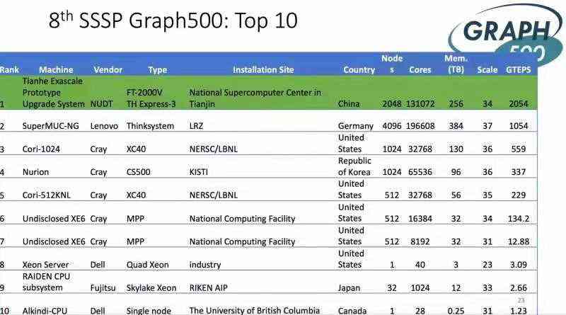 這是國際Graph500排名中的SSSP Graph500(單源最短路徑)單項榜單截圖。