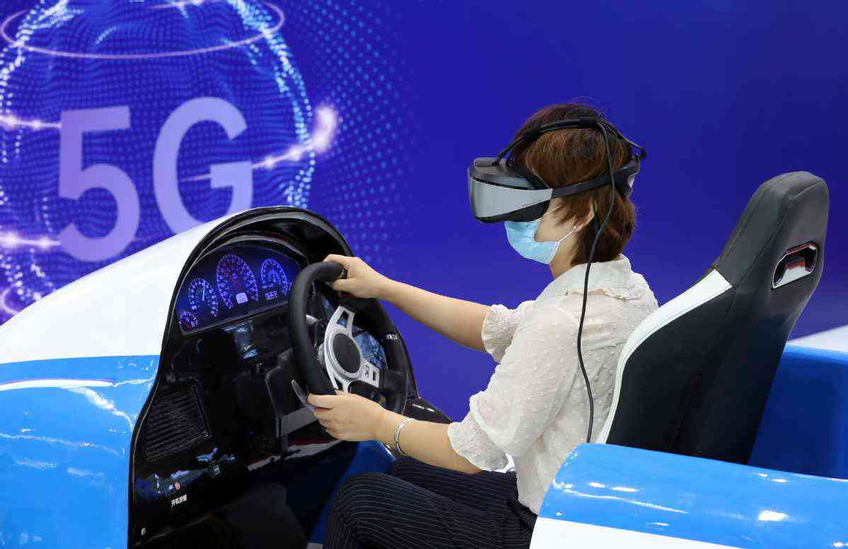 8月31日,嘉賓在大會(huì)展覽上體驗(yàn)5G虛擬駕駛。中國(guó)日?qǐng)?bào)記者 朱興鑫 攝