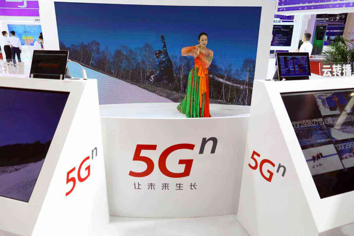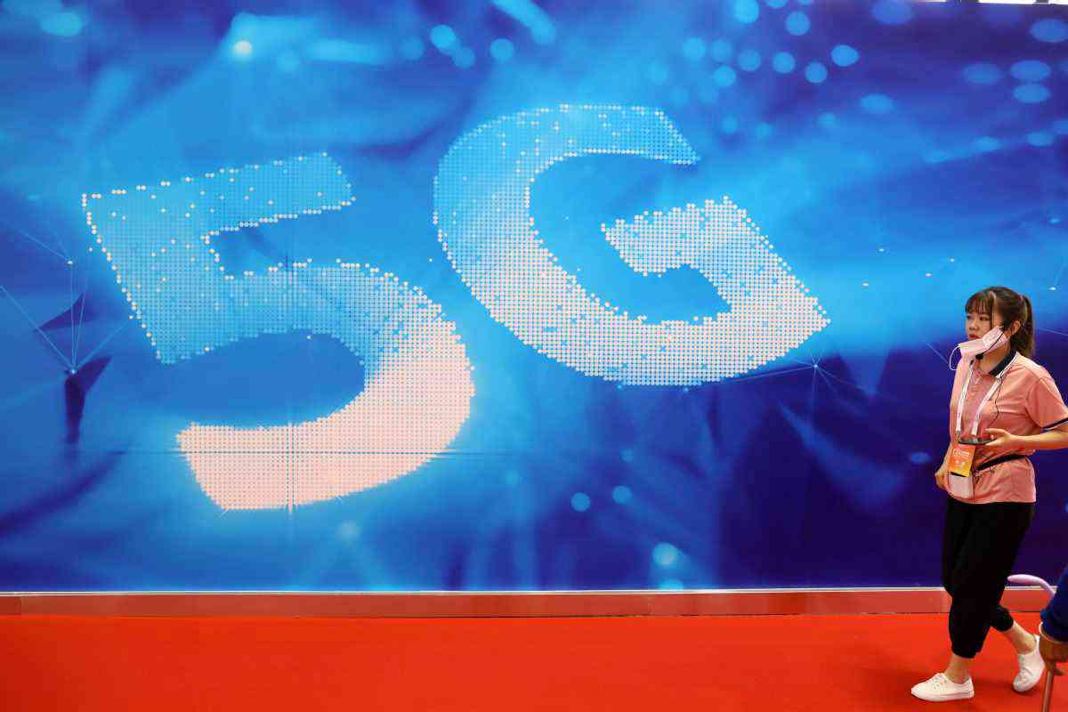 8月31日,參展商從大會(huì)展覽上5G標(biāo)識(shí)展板前走過(guò)。中國(guó)日?qǐng)?bào)記者 朱興鑫 攝