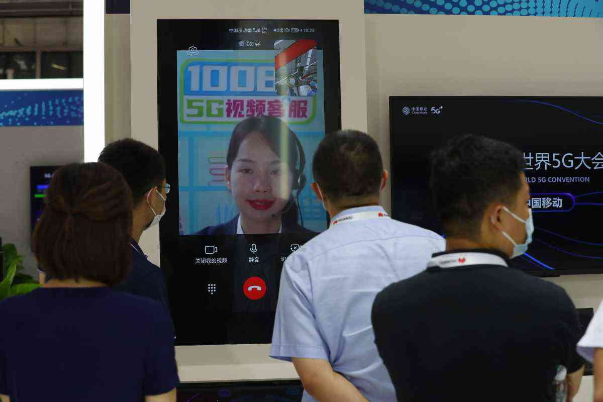 8月31日,嘉賓在大會(huì)展覽上觀看5G視頻客服演示。中國(guó)日?qǐng)?bào)記者 朱興鑫 攝