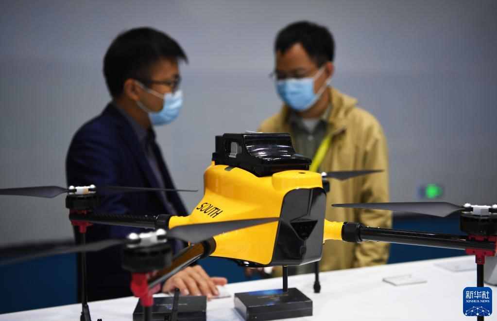這是10月10日在北斗融合應(yīng)用成果博覽會上拍攝的一款航測無人機。