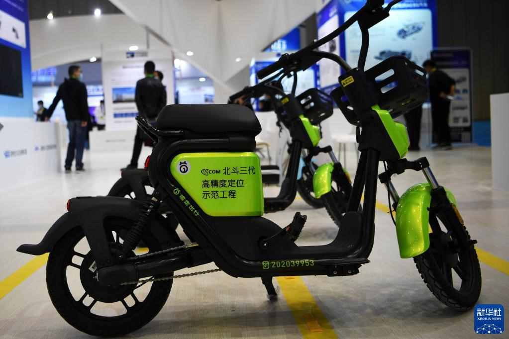 這是10月10日在北斗融合應(yīng)用成果博覽會上拍攝的一款裝有北斗定位裝置的電動車。