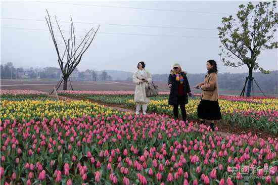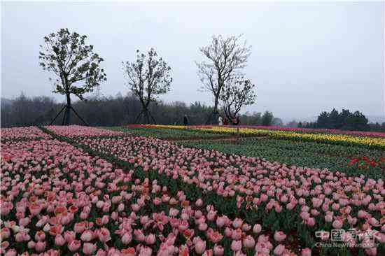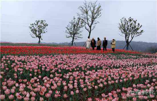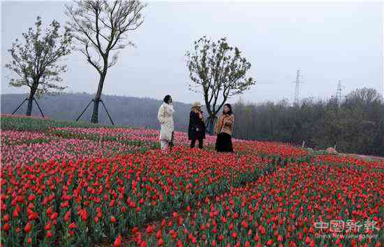 2021年3月20日,周六,春分日,正值仲春時節(jié),游客正在安徽省合肥市廬江縣龍橋鎮(zhèn)福興村百畝郁金香花海欣賞五顏六色的郁金香。