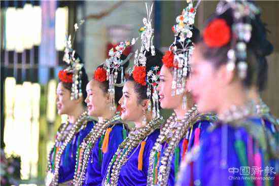 推介會上,貴州還通過旅游商品展示、旅游資源推介、民族歌舞表演、大型畫展等多個維度,進一步提升了“山地公園省·多彩貴州風”旅游品牌知名度。苗繡、蠟染、赤水竹編、銀飾等特色非遺商品一齊亮相推介會現場,引起了參會人員的濃厚興趣。推介會上極具貴州特色的《侗族大歌》、布依族民歌《好花紅》、苗族舞蹈《水姑娘》、木葉飛歌《高原我的家》、彝族民歌《彝山杜鵑紅》、歌舞《多彩和鳴》等歌舞節(jié)目,彰顯了多彩貴州風土人情和民族文化特色,贏得現場陣陣掌聲。