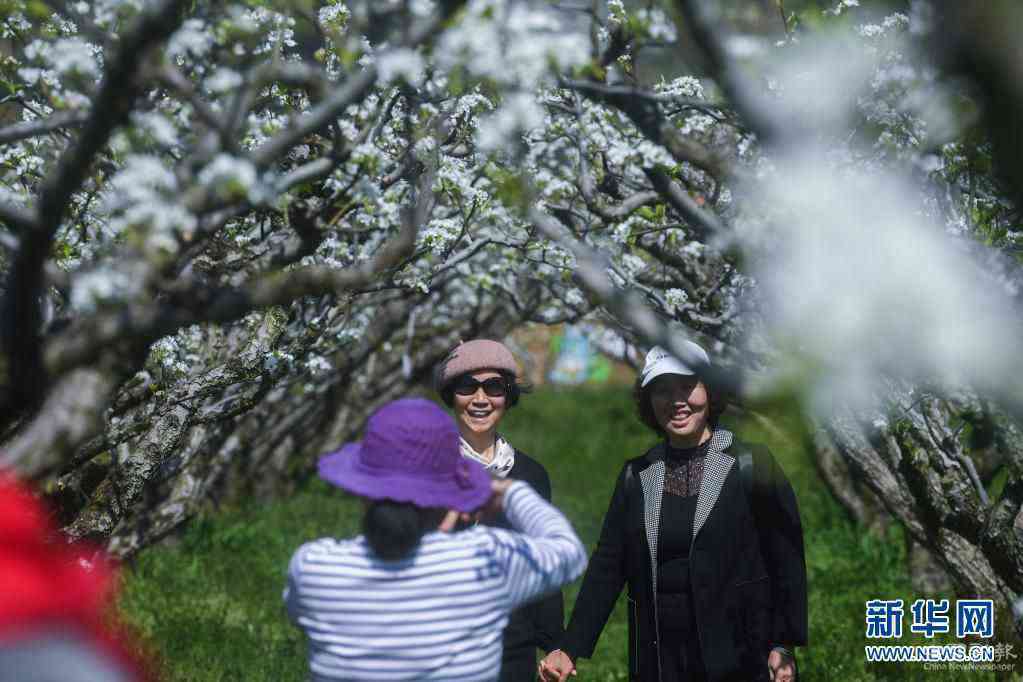 3月26日拍攝的“梨園飛雪”的春日美景。