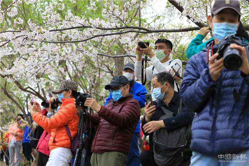 2021年4月1日,攝影愛好者在北京玉淵潭公園拍攝櫻花。(中國日?qǐng)?bào)記者 朱興鑫 攝)