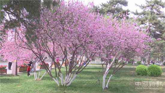 4月2日,記者走進(jìn)競(jìng)秀公園大門口,一棵開(kāi)滿粉花的樹(shù)格外引人注目。記者看到,市民們或欣賞或拍照,把這美好的景色保留下來(lái)。