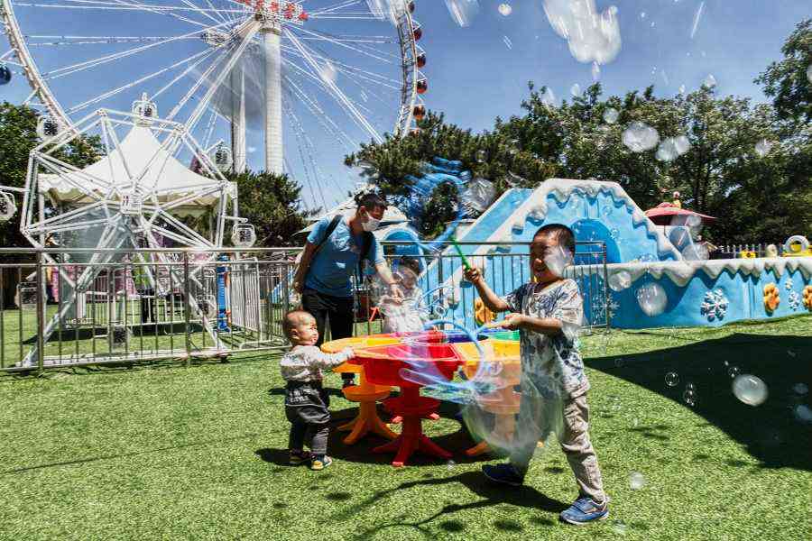 5月28日,小朋友們?cè)谂菖萃鯂?guó)主題樂(lè)園里玩耍。(中國(guó)日?qǐng)?bào)記者 姜東 攝)