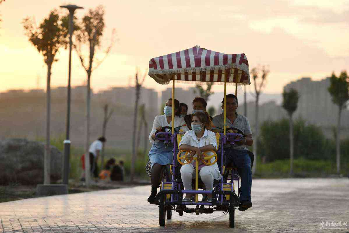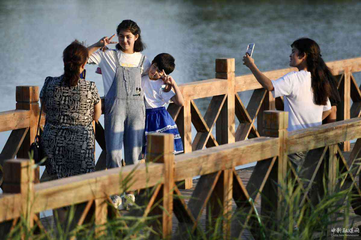 7月8日,人們在喀什市北湖公園內(nèi)觀光留影。(中國日報記者 魏曉昊 攝)
