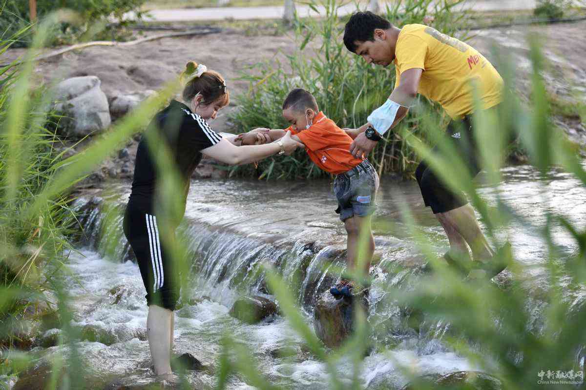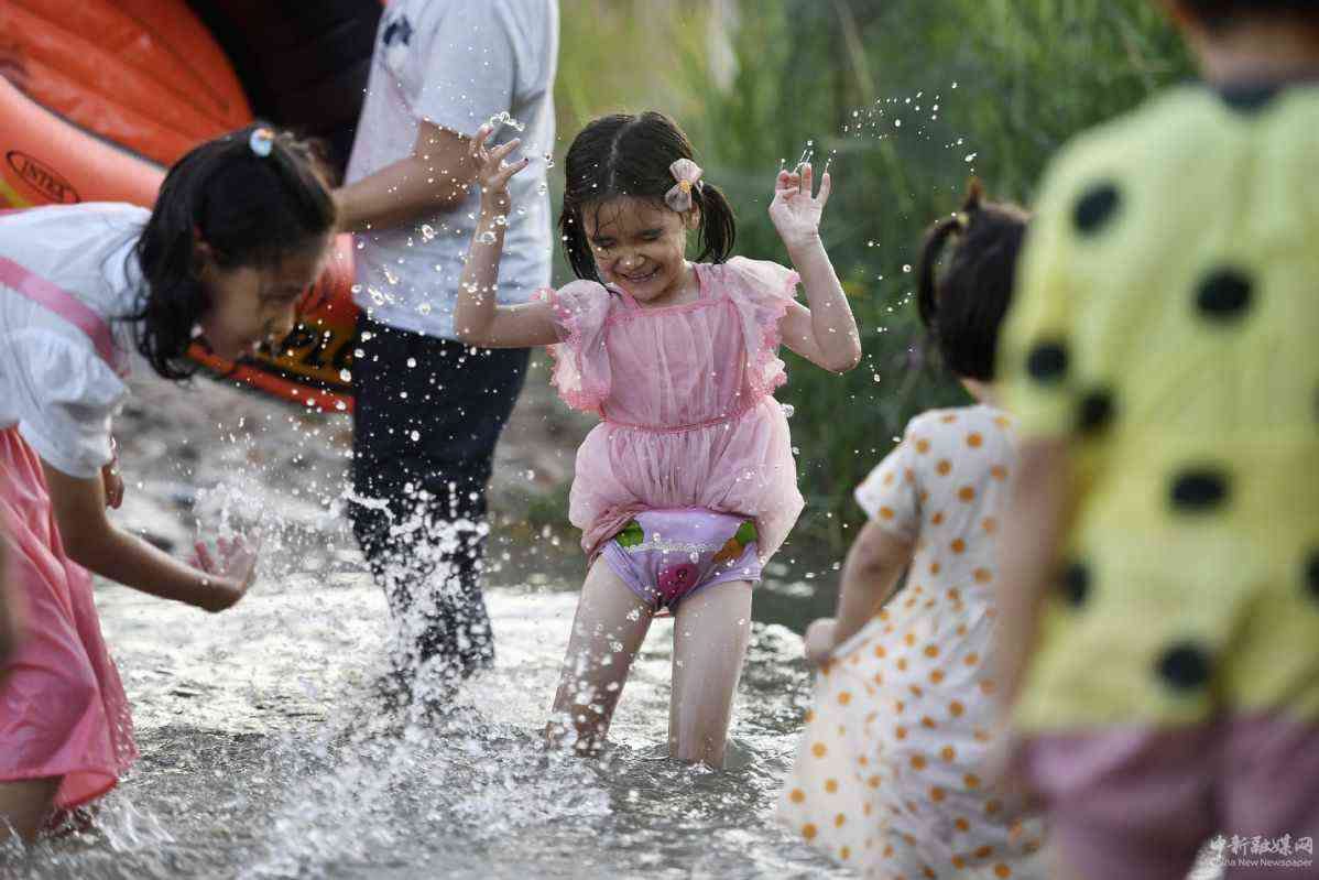 7月8日,小朋友在喀什市北湖公園內(nèi)戲水。(中國日報記者 魏曉昊 攝)