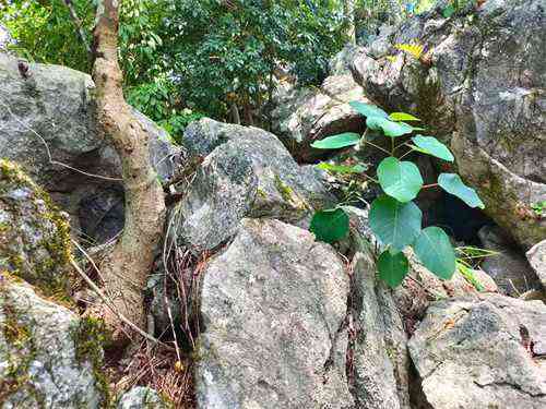 而于我,此次旅途無意間跌進(jìn)寧遠(yuǎn)鯉溪鎮(zhèn)柏家?guī)X村龍頭山,發(fā)現(xiàn)那小小山頭上的花草樹木竟然全都盤根錯(cuò)節(jié)長在石頭上,從石縫中汲取養(yǎng)分與世同春且自成芳華,形成“一花一世界、一樹一盆景”的天造地設(shè)之奇觀,我的感悟無意間更增強(qiáng)了對(duì)大自然的敬畏以及對(duì)生命的禮贊。