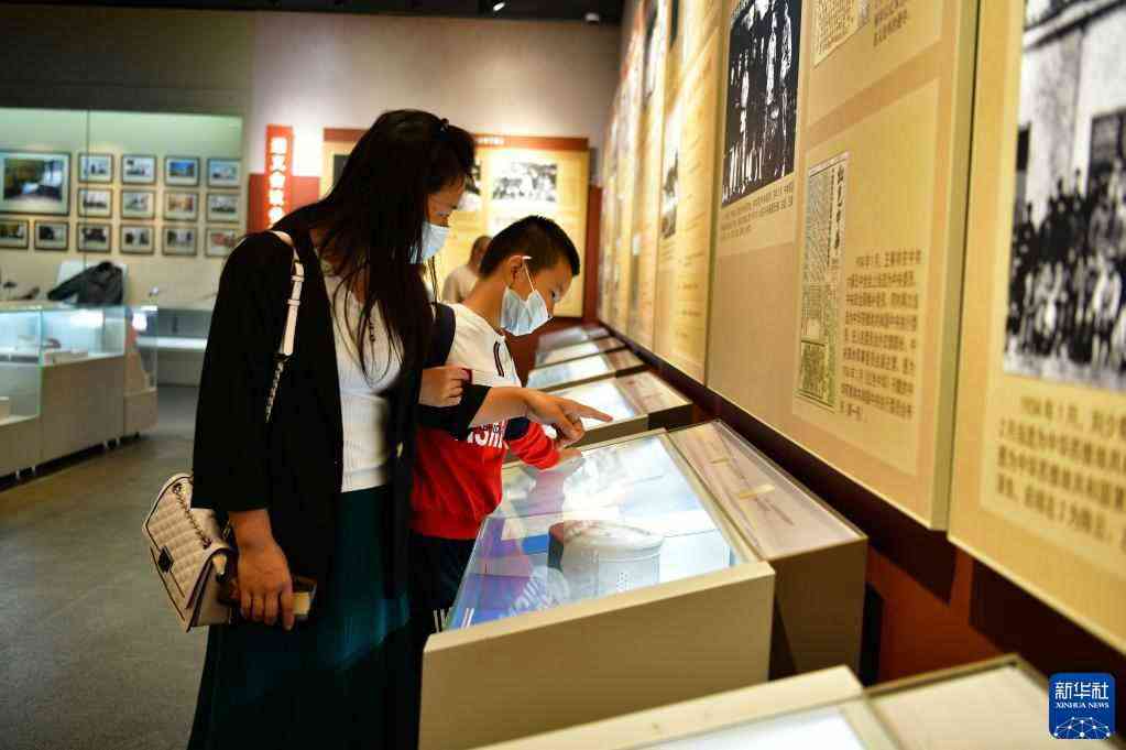 10月7日,游客在貴州省遵義市遵義會(huì)議陳列館參觀。