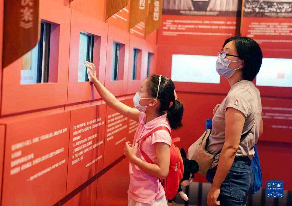 10月7日,參觀者在中共二大會(huì)址紀(jì)念館內(nèi)通過(guò)多媒體互動(dòng)裝置了解黨章歷史。