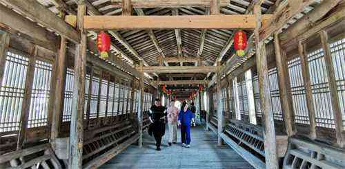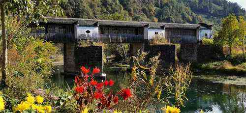 深秋時節(jié),橋頭貢菊綻放,清香撲鼻。站路邊觀景臺上看,廊橋美景一覽無余,盡收眼底,游人紛紛點贊不虛此行。(程亮 盛紅兵)