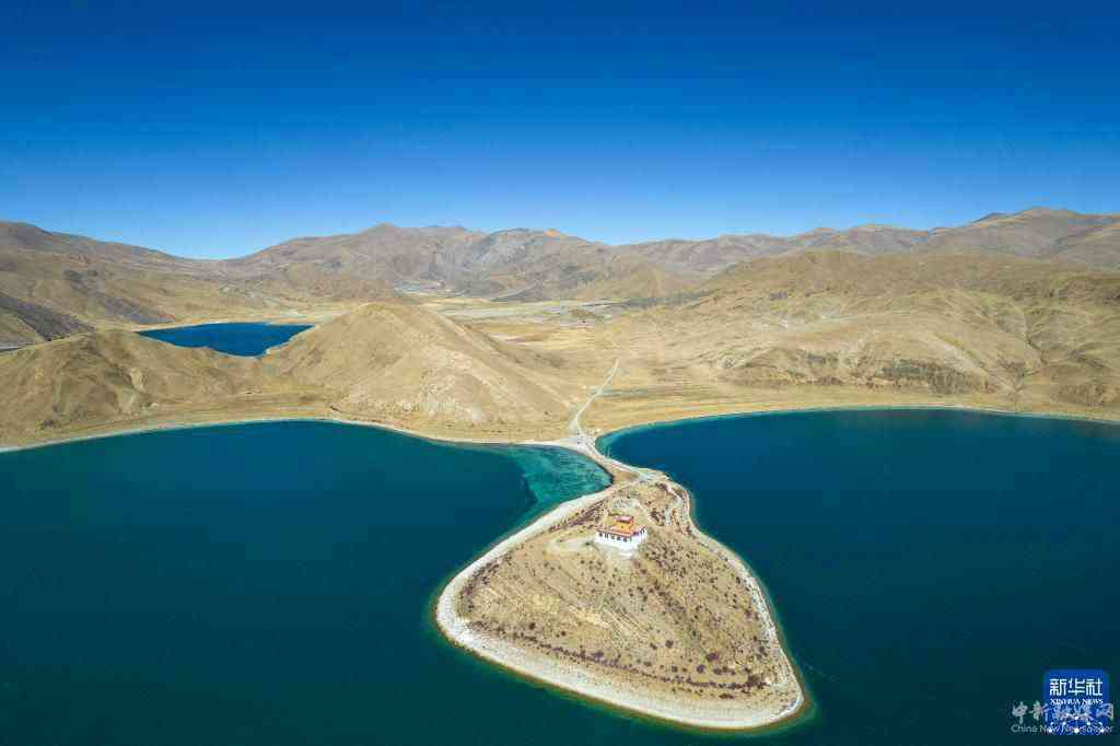 這是11月16日拍攝的羊卓雍措和坐落在湖畔的日托寺(無人機(jī)照片)。