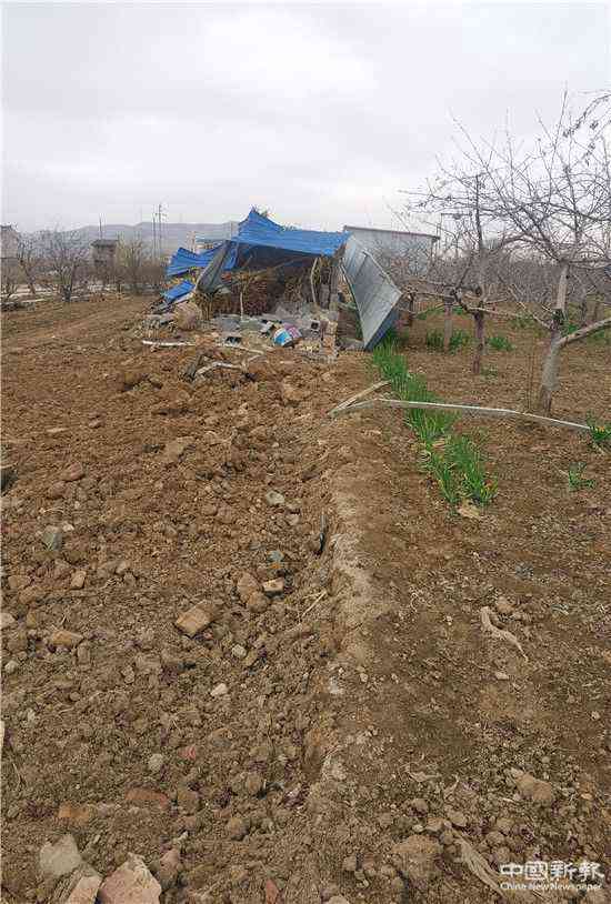 記者透過廢墟觀看,隱隱約約還能看見少許飼料和雜物。土中的幾個簡易棚已被摧毀,幾片破損的彩鋼板在空曠的天空下隨著微風(fēng)吹拂,搖搖欲倒。幾根雜亂的鋼筋伸向天幕,好似在向世人訴說自己的遭遇又好似要申訴什么?
