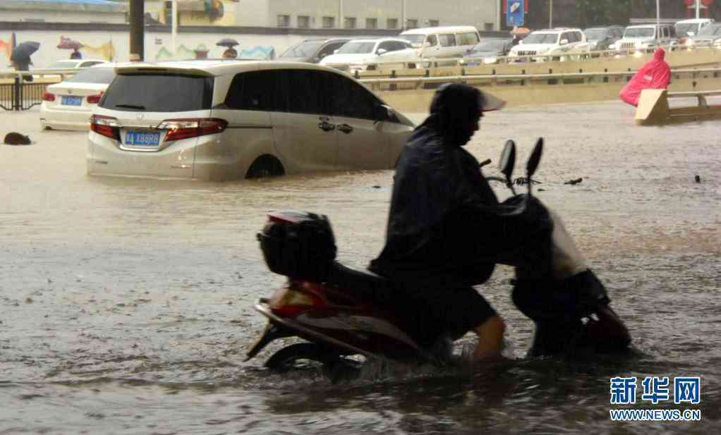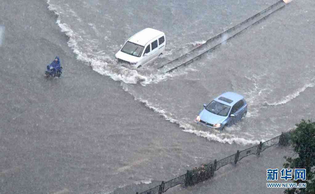 7月20日,車輛在鄭州街頭涉水前行。新華社記者 朱祥 攝