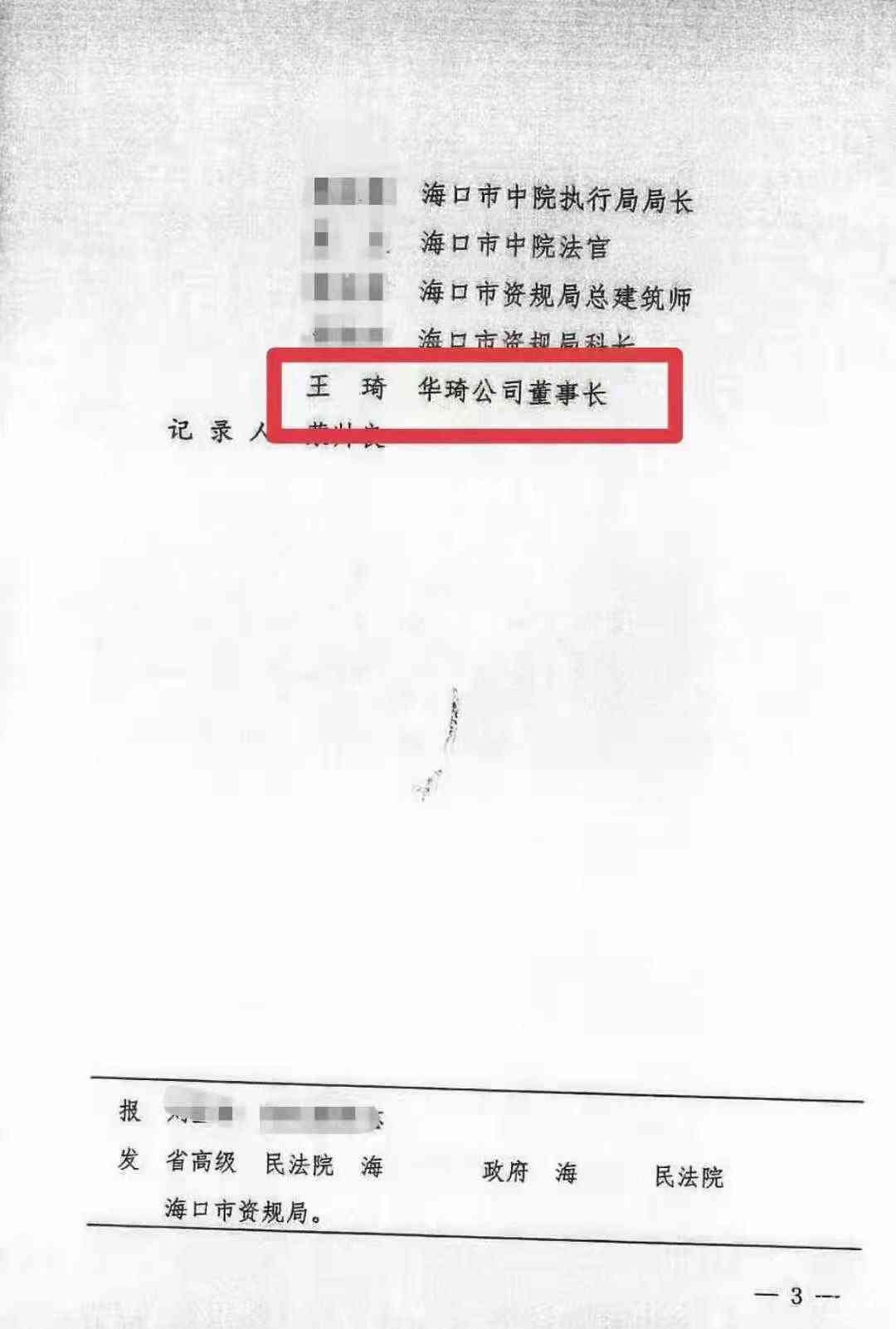 除此之外,華琦公司不僅只拿地不開發(fā),且多年來沒有納稅記錄,沒有對海南的發(fā)展作出任何貢獻。華琦法人代表王琦則對外自詡認識國家領(lǐng)導(dǎo)人,與某某國家領(lǐng)導(dǎo)人有合影,更是稱6號判決是中央政法委督辦的等等,拉大旗做虎皮。