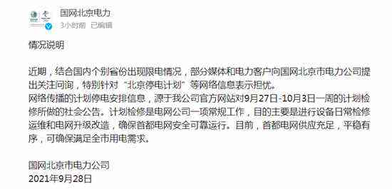 近期,結(jié)合國(guó)內(nèi)個(gè)別省份出現(xiàn)限電情況,部分媒體和電力客戶向國(guó)網(wǎng)北京市電力公司提出關(guān)注問(wèn)詢,特別針對(duì)“北京停電計(jì)劃”等網(wǎng)絡(luò)信息表示擔(dān)憂。