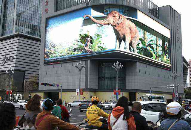 10月13日,昆明街頭,市民駐足觀看COP15主題裸眼3D宣傳視頻。(中國日報記者 武曉慧 攝)