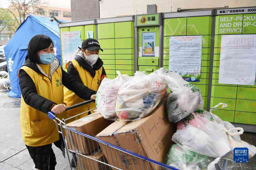 11月6日,在蘭州市七里河區(qū)光明苑小區(qū),志愿者為封控區(qū)內(nèi)群眾轉(zhuǎn)運(yùn)生活物資。