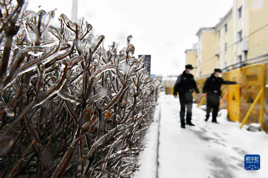 11月8日,在哈爾濱市平房區(qū)一進(jìn)出城卡點(diǎn),兩名公安人員在凍雨中執(zhí)勤。