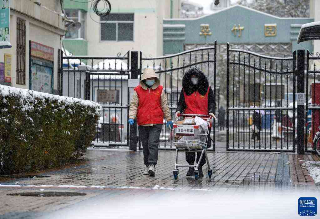 11月8日,在哈爾濱市平房區(qū)一處小區(qū),卡點(diǎn)執(zhí)勤民警幫助運(yùn)送生活物資。