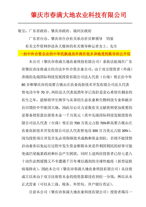 80歲外商人公開實名信 質(zhì)疑廣東肇慶營商環(huán)境