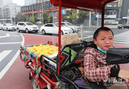 不同于姐姐長期定點(diǎn)擺攤,弟弟廖紅會踏著電動三輪,載著滿滿一車水果到烈士公園或者湘雅醫(yī)院門口叫賣。“這個伢子真的不容易。反正家里也要買水果,能幫就順手幫一下嘛!”路過的娭毑挑了點(diǎn)蘋果,遞給廖紅準(zhǔn)備買單。只因廖紅為人老實(shí)厚道,做買賣不會短斤少兩。附近的居民、還有病人的親屬都愿意在廖紅這里買點(diǎn)水果照顧他的生意。