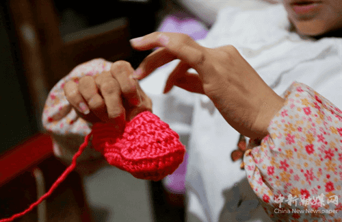 像往常一樣,姐姐映紅熟練地將親手鉤織的棉鞋一雙雙收好,整齊地碼放在尼龍袋里,坐上輪椅向離家不遠(yuǎn)的烈士公園趕去。公園門口有一塊空地,每天都有不少大爺大媽在那兒晨練。對于行動不便的映紅來說,這便是再理想不過的擺攤場所。