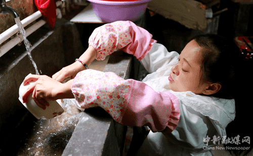 廖映紅今年36歲,是湖南湘鄉(xiāng)人。身患脆骨病的她,和弟弟廖紅一樣,身高都不足80公分。