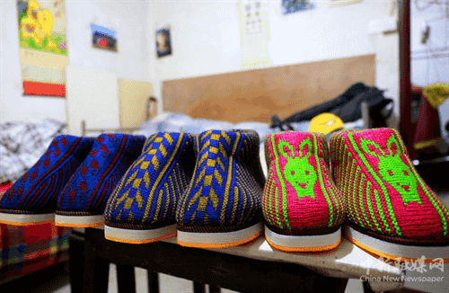 做鞋的步驟復(fù)雜,團(tuán)毛線、選樣子、織花樣、納鞋底、添棉夾……而映紅又是個認(rèn)真仔細(xì)的人,因此往往需要兩天才能做好一雙棉鞋。這費(fèi)時費(fèi)力費(fèi)眼睛的活計卻僅僅能換回幾十元的回報,但映紅一點(diǎn)也不覺得累。“我喜歡做手工,看著別人穿上我做的鞋,這讓我有很大的滿足感,也找到了一種成就感。”坐在板凳上的映紅,搓搓手指,面帶羞澀道。