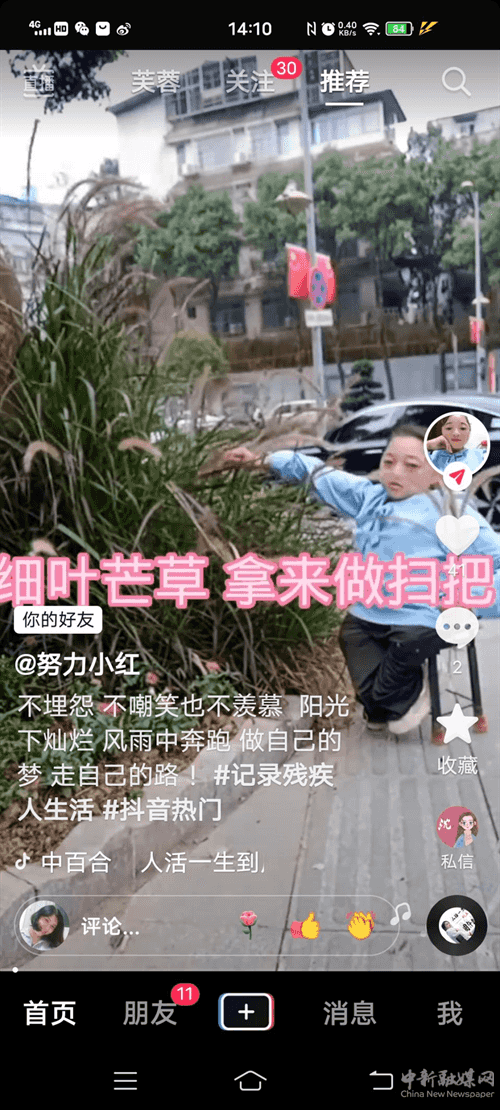 每個人都不容易??蓪τ谙窳斡臣t這樣的殘障人士來說,日子更加艱難??刹徽撊兆佑卸嚯y,廖映紅的臉上總掛著明媚的笑容。她小心翼翼地織好每一雙鞋子,開開心心地拍下每一個視頻,認(rèn)認(rèn)真真地度過生命中的每一天。她相信,天助自助者。只要努力,不拋棄不放棄,美好明天的曙光終將驅(qū)散前路的陰霾和黑暗!