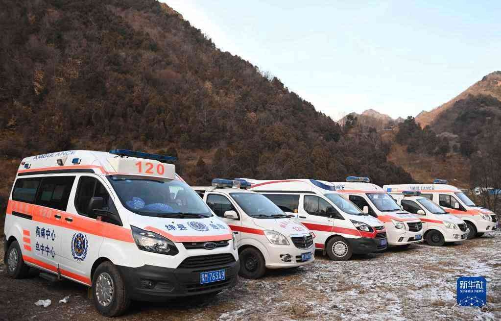 12月27日在救援現(xiàn)場(chǎng)拍攝的救護(hù)車(chē)輛。